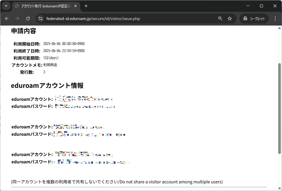 ゲスト用eduroamアカウント発行方法